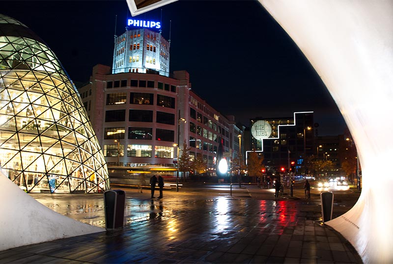 De beelden van Eindhoven verwijzen naar Brainport en per doelgroep is er één foto dicht bij de natuur en één foto dicht bij de betreffende industrie.