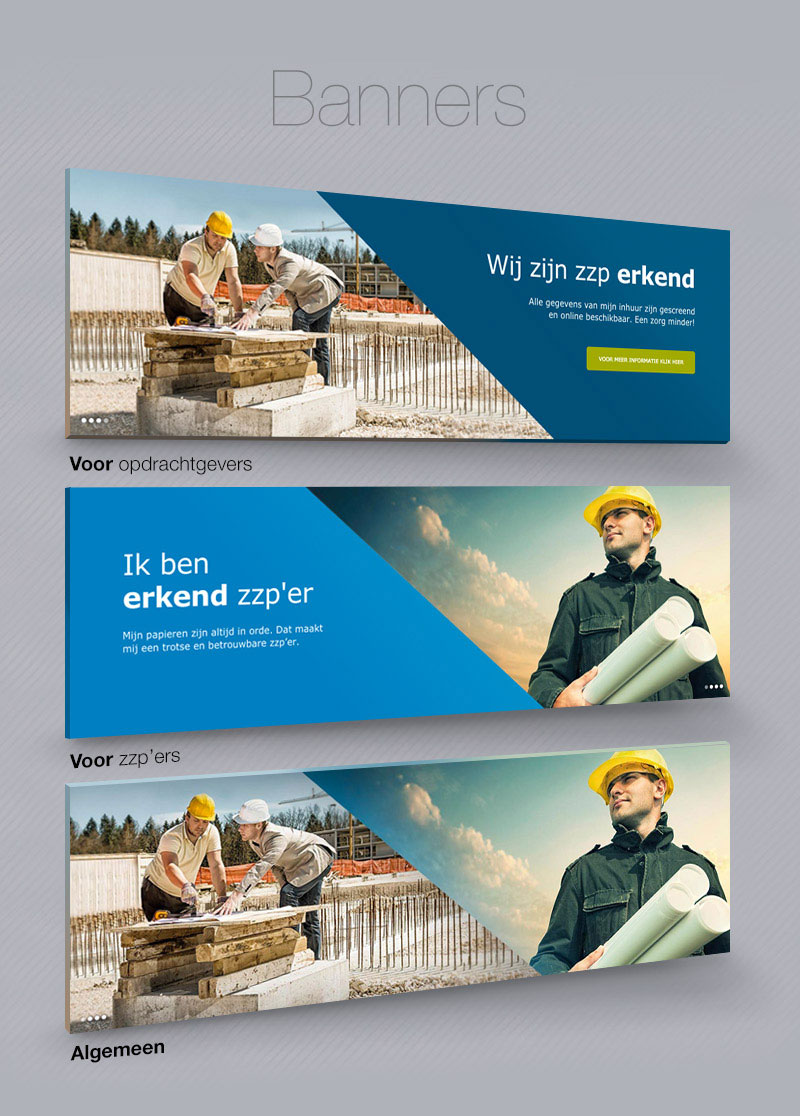 Een persoonlijke aanpak naar trotse zzp’ers en opdrachtgevers die werken met zzp’ers. ZZP-erkend is een bedrijf die voor deze twee doelgroepen certificering biedt. Zo kan een zzp’er altijd bewijzen dat hij gescreend is en een opdrachtgever dat hij met fatsoenlijke inhuur werkt. Zo heb ik bij Marcelvangalendesign mogen werken aan dit project. Hierbij hebben we gekozen voor beelden van trotse zzp’ers aan de ene kant, beelden van vertrouwen en samenwerking aan de andere kant en ook een kant waarbij we deze twee samen hebben gezet. Dit is terug te zien in de banners van de website. Met andere woorden, met ZZP-erkend heb je vertrouwen in jezelf en in elkaar.